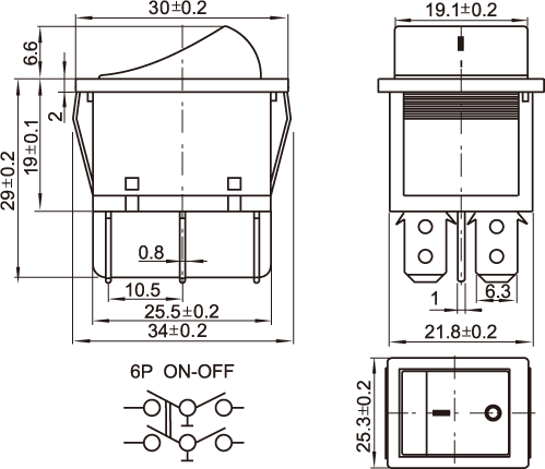 KCD船形开关系列  _  KCD4-202(六脚复位)-014